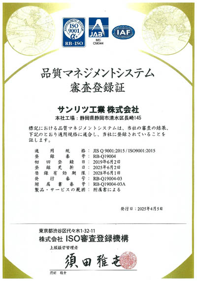 | 摘要規格 | JIS Q 9001:2015 / ISO9001:2015 |